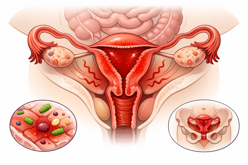 К неинфекционным причинам относятся миома матки и аденомиоз. Они могут давать обильные и болезненные менструации, чувство давления и увеличение матки. При миоме узлы бывают разных размеров и расположения, из-за чего симптомы у женщин отличаются. Аденомиоз связан с разрастанием ткани эндометрия в мышечную стенку матки и часто усиливает боль. Эти состояния не являются “воспалением” в узком смысле, но по ощущениям могут восприниматься именно так.
