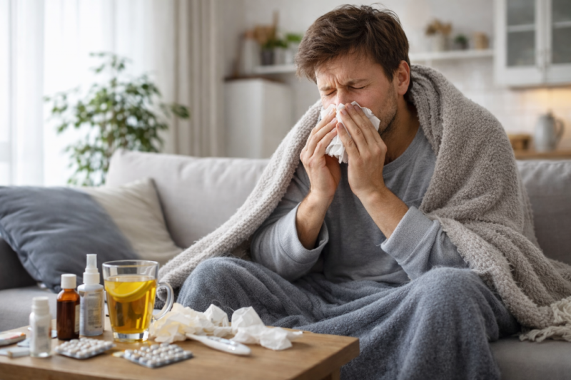 Грипп и простуда действительно могут быть похожи по первым проявлениям, но между ними есть важные различия. Простуда чаще начинается постепенно и в основном связана с воспалением слизистой оболочки носа, горла и носовых пазух. Для нее более характерны насморк, першение в горле и умеренное общее недомогание. При гриппе симптомы обычно появляются резко и выражены сильнее. Человек может буквально за несколько часов почувствовать резкую слабость, ломоту и повышение температуры.