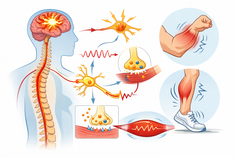 Причина миоклонуса связана с нарушением передачи сигналов в нервной системе. Сбой может происходить на разных уровнях: в коре головного мозга, в стволе мозга, в спинном мозге или в периферических нервах. Из-за этого мышцы получают неправильный импульс и сокращаются слишком резко или несвоевременно. В некоторых случаях, наоборот, происходит кратковременное падение мышечного тонуса, из-за чего движение тоже выглядит как внезапный толчок. Именно поэтому миоклонус считается не самостоятельной болезнью, а симптомом или синдромом.