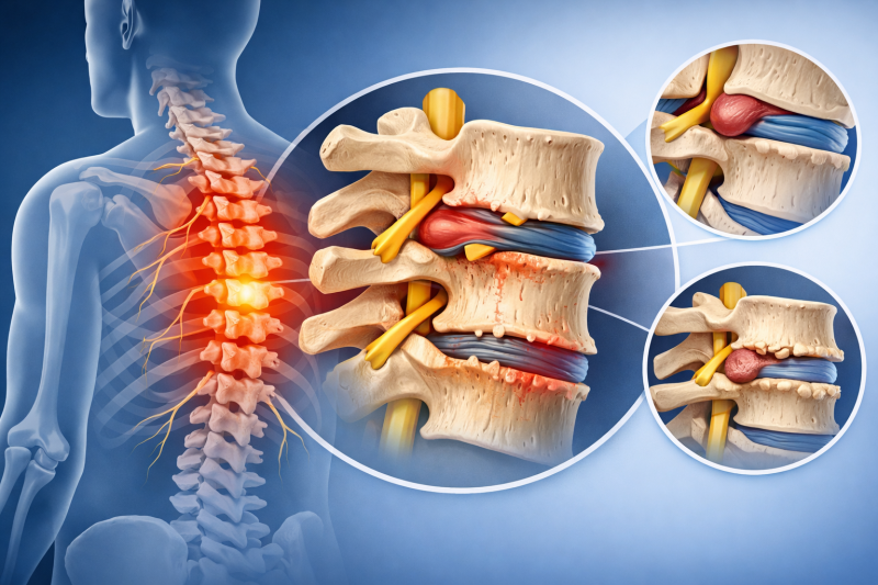 Со временем к процессу могут подключаться фасеточные суставы — небольшие суставы между позвонками, которые участвуют в движении. Их перегрузка нередко даёт локальную болезненность и «заедание» при поворотах. Также возможно раздражение нервных структур, особенно если изменённые ткани уменьшают пространство вокруг корешков. Тогда боль может становиться более «стреляющей», появляться онемение и необычные ощущения по ходу межрёберных нервов. Важно, что выраженность симптомов не всегда строго соответствует картине на снимках.