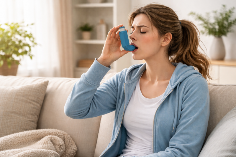 Острый приступ бронхоспазма может развиваться быстро, и человек ощущает нарастающую нехватку воздуха. Часто появляется свистящее дыхание, сухой кашель и невозможность сделать полноценный выдох. В такой момент важно использовать назначенный препарат быстрого действия так, как рекомендовал врач. Также имеет значение спокойная поза, доступ свежего воздуха и отсутствие паники, которая усиливает ощущение удушья. Но главный принцип — если приступ тяжелый или не поддается купированию, нужна медицинская помощь.