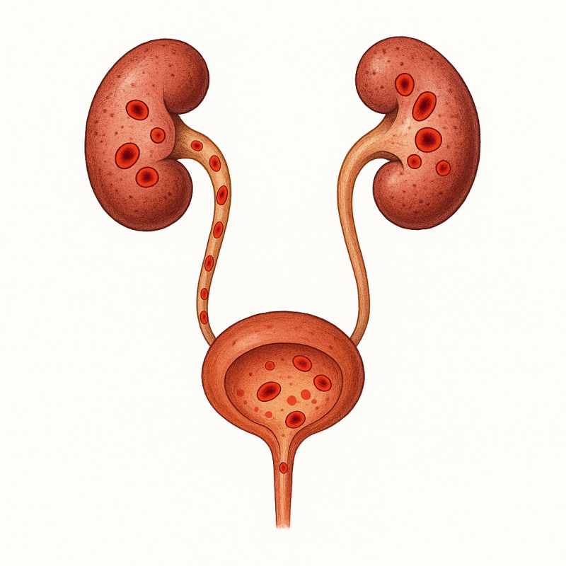 Рецидивирующие инфекции мочевых путей представляют собой повторные воспаления, возникающие чаще двух раз в полугодие или трёх раз в год. Они могут затрагивать мочевой пузырь, мочеиспускательный канал, мочеточники или почки. Заболевание чаще встречается у женщин из-за анатомических особенностей, но также может наблюдаться у мужчин, особенно при патологиях простаты. Симптомы включают боль при мочеиспускании, частые позывы и жжение, что значительно снижает качество жизни.