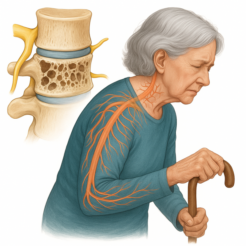 Остеопороз и старческая хрупкость костей представляют собой одно из самых серьёзных состояний у пожилых людей. С возрастом костная ткань теряет прочность и становится более уязвимой. Неврологические осложнения на фоне этих процессов встречаются чаще, чем принято считать. Они связаны с нарушением чувствительности, координации движений и повышением риска падений. Всё это значительно снижает качество жизни и увеличивает зависимость пациента от окружающих.