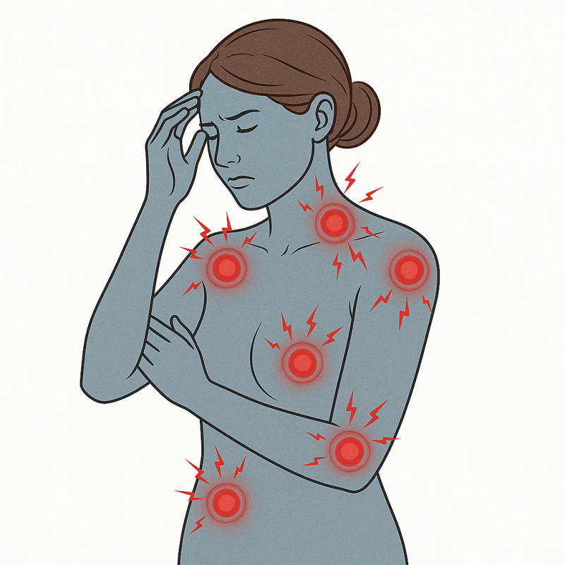 Фибромиалгия — это хроническое заболевание, характеризующееся диффузной мышечно-скелетной болью, повышенной чувствительностью и усталостью. Симптомы проявляются в разных частях тела и могут усиливаться при нагрузках или стрессовых ситуациях. Болезнь не связана с воспалительным процессом, но сопровождается изменениями в восприятии боли. Она затрагивает не только физическое состояние, но и эмоциональное благополучие человека. Диагностика затруднена, так как симптомы часто схожи с другими патологиями.