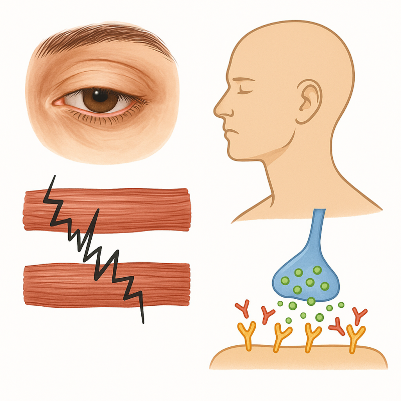 Суть болезни заключается в том, что иммунная система вырабатывает антитела, атакующие рецепторы ацетилхолина в нервно-мышечных соединениях. В результате мышца не получает полноценный сигнал и теряет способность к сокращению. Чаще всего первые признаки проявляются в виде слабости глазных мышц, затруднений при жевании и глотании. Постепенно могут вовлекаться и другие группы мышц.