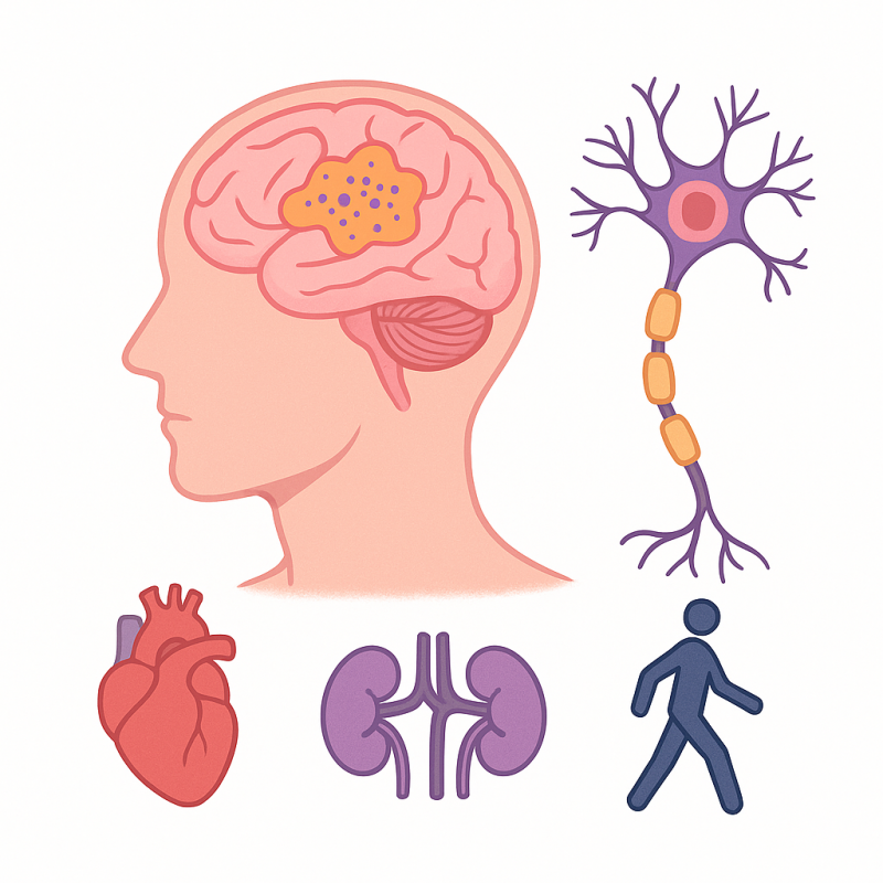 Мультисистемная атрофия (МСА) — редкое и тяжёлое нейродегенеративное заболевание, которое поражает сразу несколько отделов нервной системы. Основу патологического процесса составляет накопление аномального белка альфа-синуклеина в структурах головного мозга. Эти изменения приводят к разрушению нервных клеток и нарушению передачи импульсов. Болезнь характеризуется сочетанием паркинсонических, мозжечковых и вегетативных нарушений. Постепенно ухудшается контроль над движениями, артериальным давлением и функциями внутренних органов.