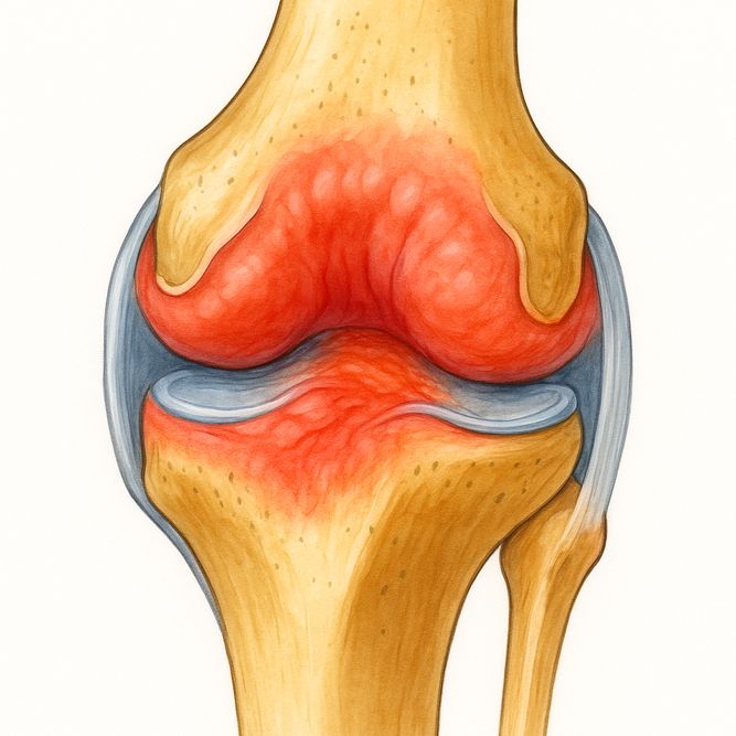 Синовит — это воспаление синовиальной оболочки, выстилающей внутреннюю поверхность суставной капсулы. Это состояние сопровождается накоплением избыточного количества жидкости в суставной полости и может вызывать болезненность, отёчность и ограничение подвижности. Чаще всего синовит поражает коленные, тазобедренные, локтевые и плечевые суставы.