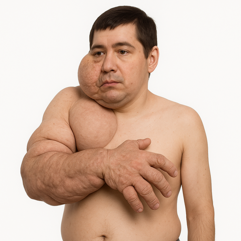 Проявления синдрома Протея отличаются значительным разнообразием и могут касаться как внешнего вида пациента, так и работы внутренних органов. Одним из самых заметных симптомов является асимметричное увеличение конечностей или других частей тела.